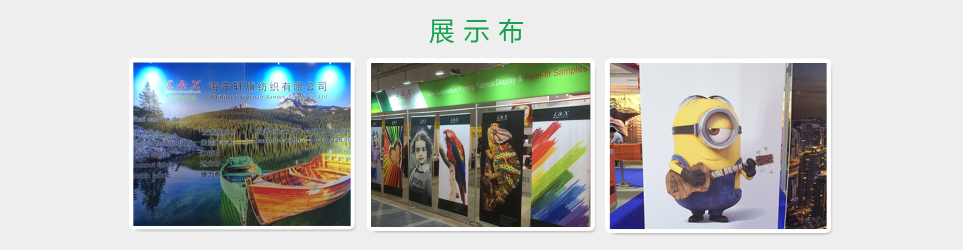 海宁轩旗纺织有限公司专业生产数码直喷广告面料。产品涵盖双透旗帜布,灯箱布,展架布,弹力布,易拉宝布,广告窗帘布,双面喷绘布等,适合于热转印,热升华直喷打印,UV打印,Latex打印等印花方式。...